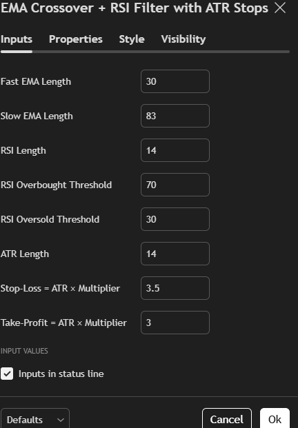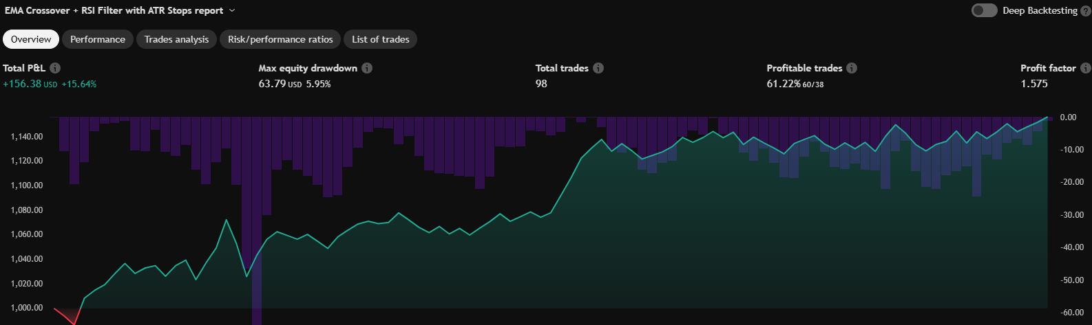 Free EMA Crossover with RSI Confirmation and ATR-Based Stops | Trend Following Strategy